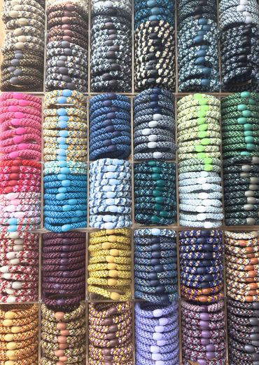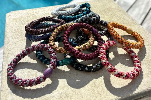 Ce chouchou bracelet, vous le reconnaîtrez sans peine, il a une allure qui se démarque tant par son look, que par ses designs et ses couleurs. Vous ne pourrez que vous extasier en les regardant à ne même plus savoir lequel vous allez choisir, offrir... Leurs tissages sont différents par le choix des tissus utilisés, le coton, les velours se retrouvent tout en douceur dans la tendance des modes colorées.