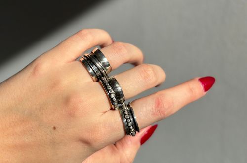 La bague de méditation est une bague anneau large, sur laquelle sont montés des anneaux amovibles plus fins. Ces derniers peuvent être bougés, roulés, au gré de vos envies, notamment pour libérer vos tensions.