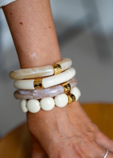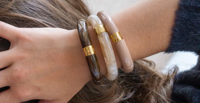 Réalisé sur un élastique à toute épreuve est ultra résistant. Vous pouvez tirer dessus à l'infini, la résine acrylique utilisée ne casse pas ! Ce Pipoca assemble des tubes incurvés qui s'accumulent les uns à côté des autres, inscrit d'un anneau doré gravé de du logo de la marque. Les couleurs teintés dans la masse sont unis ou marbrés. C'est leur assemblage au gré des envies de la créatrice, au gré du vent des tendances de la mode ! Et qu'il soit porté en solitaire ou portés accompagnés les uns avec les autres, vous pourrez créer votre univers Parabaya Pipoca !