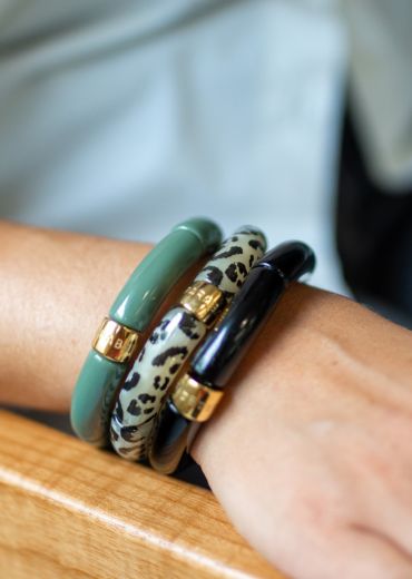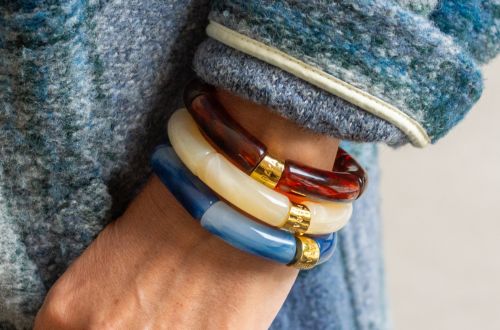 A bien y regarder, ces bracelets sont des bonbons acidulés et nous nous précipitons dessus comme des enfants ... Toutes les couleurs de l'arc en ciel nous sont proposées. Ces couleurs sont intercalées dans des sens uniques et variées à l'infini ... qui nous laissent la liberté d'en jouer selon nos garde-robes sobres ou sophistiquées !