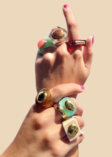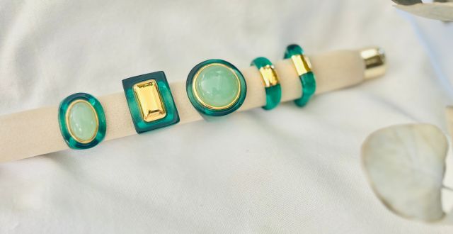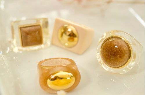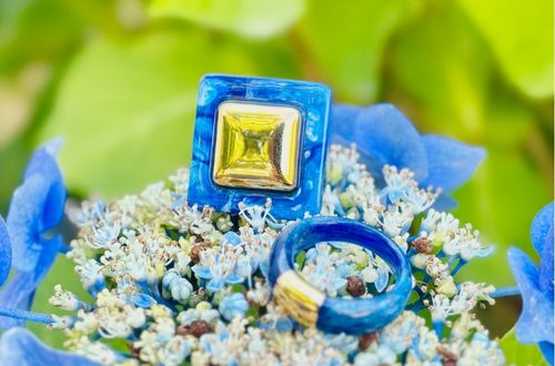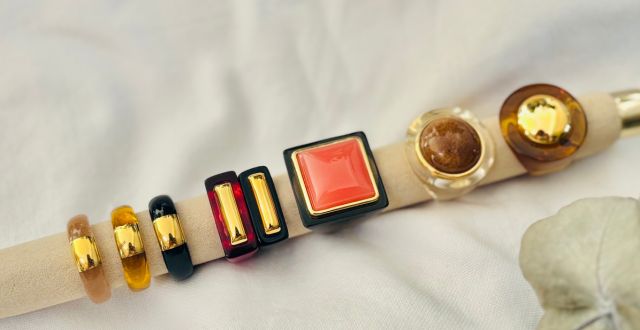 L'or 18 carats plaqué provient des déchets recyclés. L'éthique lui tient à coeur. La résine, cette matière dont on peut à l'infini composer des symphonies de formes pour des pièces affirmées. Les couleurs obtenues par Lucas Jack sont exclusives et inédites. Elles sont cumulables aux autres couleurs pour des accords élégants ... peut-être y verrez-vous des gourmandises, des effluves de paysages proches ou lointains au levé ou couché du soleil, des pigments des plaines arides ou pas, des montagnes enneigées ou pas, des mers du sud ou pas ?