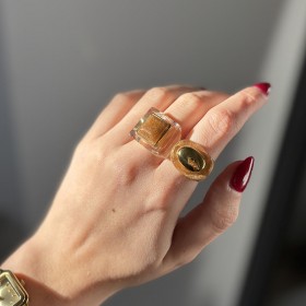 Descriptif de Bague large GOLD SANDSTONE résine AMBRE MIEL - Cabochon ovale doré du créateur Lucas Jack London