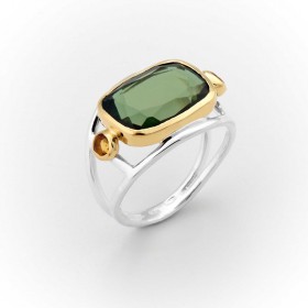 Descriptif de Bague large en Argent Doré - Tourmaline verte & Citrines du créateur Canyon