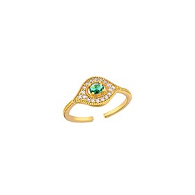 Descriptif de Bague ajustable GREEN MAJESTIC EYE Or - Oeil cristaux verts & blancs du créateur MYA-BAY
