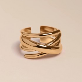 Un joli modèle de fabrication française très original : un anneau large ajustable composé d'anneaux entrelacés qui ajoute une touche distinguée pour vos looks minimalistes en solitaire et originale pour vos looks tendances en combo, précieux au quotidien !
