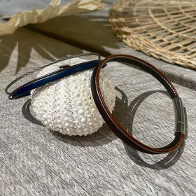 Le bracelet jonc trois rangs, 2 liens de cuir marron et bleu et 1 câble : Le bracelet qui séduit !
