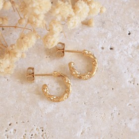 Comme toutes les boucles d'oreilles pour oreilles percées, elles sont faciles à déposer et à retirer. C'est le système puce très fin qui est utilisé : une tige et sa pince. Cette tige retient un mini anneau ouvert travaillé façon diamanté qui apporte de la légèreté et un visuel très doux. Voilà un décor de haute volée !