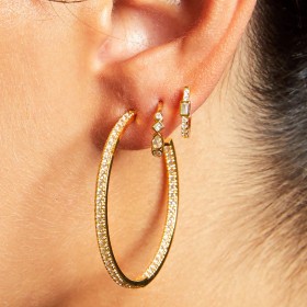 Les créoles dorées à l'or fin 24 carats et serties de pierres fines, sont faites pour briller jusqu'au bout de la nuit. Grâce à leur design intérieur, extérieur, elles attaquent la lumière sous tous les angles et électrisent cos looks avec élégance. C'est la touche finale idéale pour vos soirées, vos dîners ou vos envies de faire sensation.