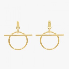 Ces boucles d'oreilles sont conçues avec un plaqué or de haute qualité. Ce sont des créoles pour oreilles percées hypoallergéniques formées d'une puce design bombée pour l'attache aux lobes qui laisse pendre par une bélière ronde un anneau inscrit d'une barrette fixée transversalement sur la partie hauteur l'anneau pour former un décor unique.
