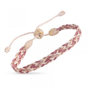 Le bracelet se pare couleurs automnales qui se marient harmonieusement pour offrir une allure chic et intemporelle. Sa conception ajustable, grâce à un ingénieux système de nœuds coulissants, permet de le resserrer aisément autour du poignet pour un confort optimal et un ajustement parfait
