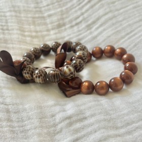 Chaque bracelet porte la signature Zoé Bonbon : elle est inscrite sur la médaille emblématique montée sur chaque bracelet. Le bracelet est agrémenté d'un délicat ruban de satin marron et d'un pendentif rond de couleur identique au bracelet, gravé Zoé Bonbon pour authentifier le bracelet.