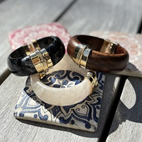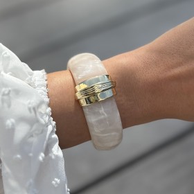 Descriptif de Bracelet Jonc large PARADIS doré - Résine marbrée nacrée du créateur Argelouse