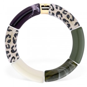Bracelet jonc élastiqué CHAUD CACAO CAPI 1- léopard marbré & KakiParabaya