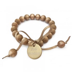 Chaque bracelet porte la signature Zoé Bonbon : elle est inscrite sur la médaille emblématique montée sur chaque bracelet. Le bracelet est agrémenté d'un délicat ruban de satin marron et d'un pendentif rond de couleur identique au bracelet, gravé Zoé Bonbon pour authentifier le bracelet.