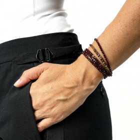 Vous apporterez une touche d'élégance intemporelle à votre look avec le Blondie en 6 tours. Ses couleurs automnales et hivernales sont sublimes ! Une couleur bordeaux accompagnés d'Hématites gold et de perles originales en heishis par touche, qui apporte une note lumineuse au bracelet. Ce bijou polyvalent peut être porté aussi bien en bracelet multi-tours qu'en collier chic, parfait pour rehausser vos tenues de jour comme de soirée. Son design fin et élégant en fait l'accessoire idéal pour toutes les occasions, en solitaire ou en accumulation !