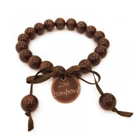 Chaque bracelet porte la signature Zoé Bonbon : elle est inscrite sur la médaille emblématique montée sur chaque bracelet. Le bracelet est agrémenté d'un délicat ruban de satin marron et d'un pendentif rond de couleur identique au bracelet, gravé Zoé Bonbon pour authentifier le bracelet.