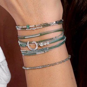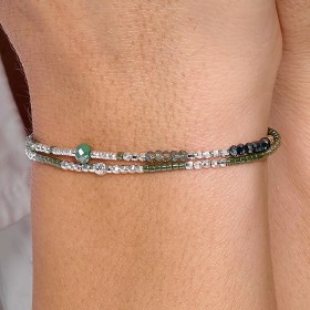 Descriptif de Bracelet 2 tours élastique SPRING en argent - Vert Kaki du créateur Doriane Bijoux