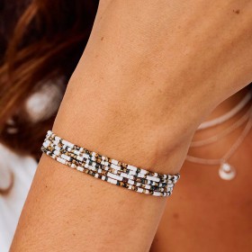 Descriptif de Bracelet élastique LE MIX 5 TOURS argent - Blanc hématite léopard du créateur Doriane Bijoux