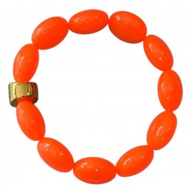 Ce bracelet est facile à enfiler, léger et confortable. Il est composé d'une ribambelle de perles rondes légèrement aplaties, aux inspiirations gourmandes du bonbon acidulé. Sa finition est lisse et brillante et il est inscrit d'un anneau en acier doré gravé du logo de la marque.