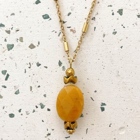 Le collier Lorette, un style idéal ! Chaîne fantaisie et Pendentif Jade topaze : un collier tendance et intemporel
