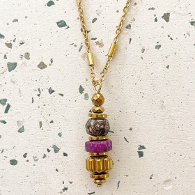 Ces colliers de la Collection LORETTE se dotent d'un assemblage et finition de haute qualité. Le choix des pierres semi-précieuses naturelles, sculptées ou pas aux couleurs chaleureuses apportent une richesse à votre silhouette !