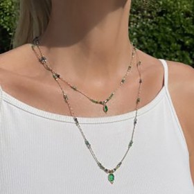 Descriptif de Collier sautoir cordon ajustable fin AMBRE doré - Agate verte du créateur Clo&Lou