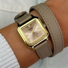 Cette montre cluse Gracieuse Leather Rugby Tan Lizard Gold Colour, est composée d'un bracelet double en cuir façon lézard de couleur nude. Le look rétro de la montre Cluse s'inscrit dans la mode vintage, qui fait toujours fureur. Le bracelet doublé au poignet en cuir apporte du relief à l'ensemble grâce à son effet lézard. De plus, son système de fermeture vous permet de l'ajuster à la taille de votre poignet.