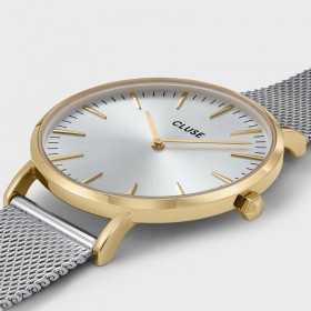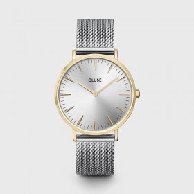 Cette version bicolore de la montre Boho Chic Cluse fait ressortir à merveille le côté géométrique du modèle. Intemporelles, les couleurs or et argent de cette montre vous permettent de la porter avec presque toutes les couleurs de vêtements.