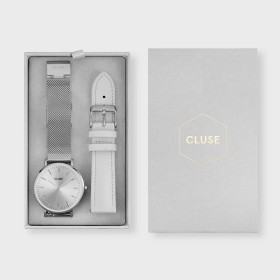 Coffret cadeau : Montre Cluse Boho Chic bracelet milanais et bracelet cuir gris clair : un design élégant, essentiel et moderne