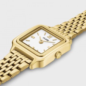 Ce modèle de montre Cluse se veut résolument luxueux, pour un prix accessible. Très tendance auprès des femmes, il convient pour tous les âges. La forme carrée du cadran doré est également très prisée, pour le côté complètement féminin qu'il évoque.
