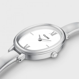 Descriptif de Montre L'Ovale Watch Steel, White, bracelet jonc argent & cadran blanc du créateur Cluse